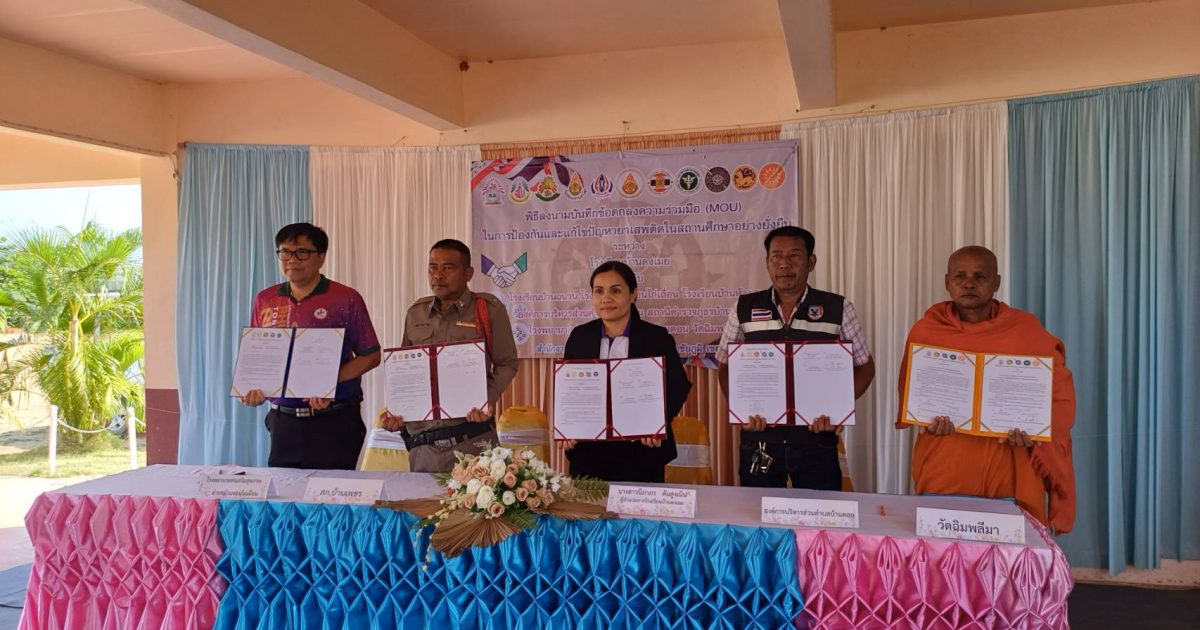 วันที่ 11 มกราคม 2567 เวลา 10.30 น. พ.ต.ท.ประหยัด ศรีเพ็ชร สว.สภ.บ้านเพชร มอบหมายให้ ร.ต.ต.เดชเจริญ กัณหะสุต รอง สว.(ป.) สภ.บ้านเพชร พร้อมด้วย ด.ต.เกษม ภิรมย์ไกรภักดิ์ ผบ.หมู่ (ป.) สภ.บ้านเพชรร่วมพิธีลงนามบันทึกข้อตกลงความร่วมมือ ( MOU ) สถานศึกษาสีขาวปลอดยาเสพติดและอบายมุข ของกลุ่มโรงเรียนตำบลบ้านดอน โดยมี โรงเรียนบ้านดอนไก่เถื่อน , โรงเรียนบ้านฉนวน , โรงเรียนบ้านห้างสูง , โรงเรียนบ้านดงเมย และโรงเรียนฉิมพลีมา เพื่อสร้างเครือข่ายสถานศึกษาสีขาวปลอดยาเสพติดและอบายมุข และความร่วมมือของ สภ.บ้านเพชร ณ โรงเรียนฉิมพลีมา ต.บ้านดอน อ.ภูเขียว จว.ชัยภูมิ