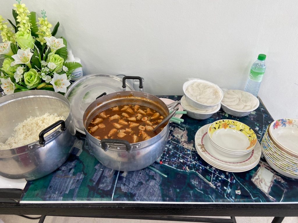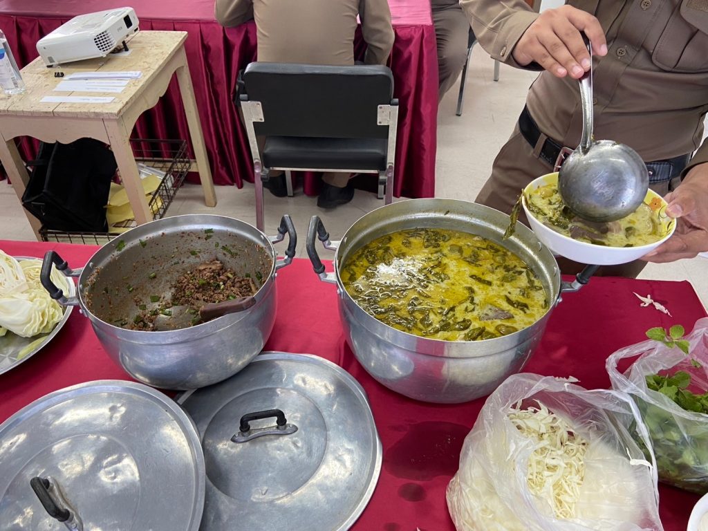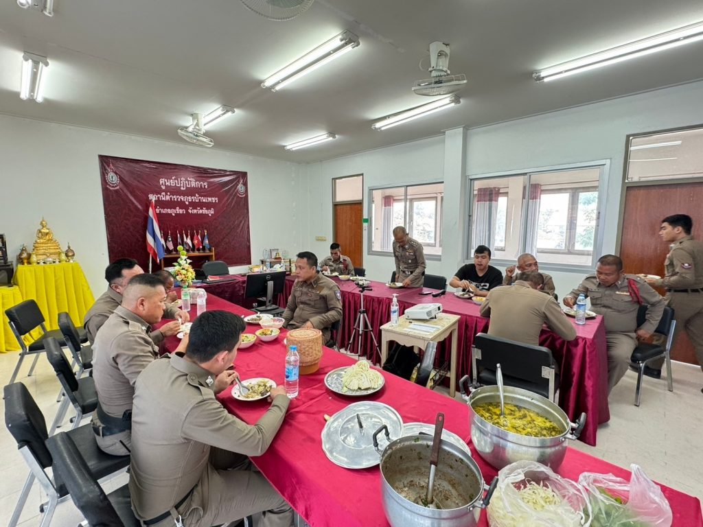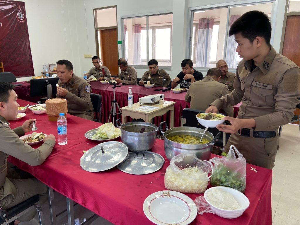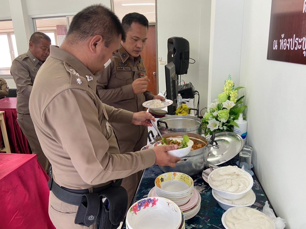 🔴เวลา 11.50 น.จัด เลี้ยงอาหารกลางวันให้กับเจ้าหน้าที่ตำรวจสถานีตำรวจภูธรบ้านเพชร และครอบครัว เมนู ขนมจีนแกงเขียวหวาน ลาบหมู