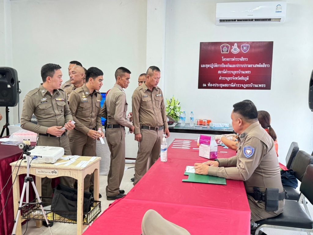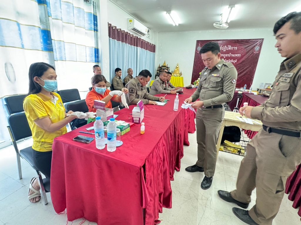 🔴เวลา 09.30 น.จัดทำ โครงการตำรวจสีขาวชุดปฏิบัติการปราบปรามยาเสพติดสีขาว โดยร่วมทำเอ็มโอยู กับโรงพยาบาลส่งเสริมสุขภาพตำบลบ้านเพชรทำการตรวจปัสสาวะเจ้าหน้าที่ตำรวจทั้ง 22 นายไม่ปรากฏผลบวกทั้ง 22 นาย