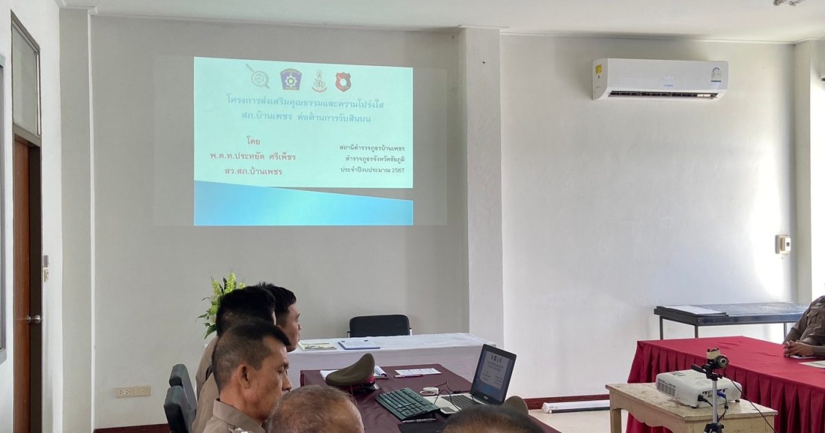 วันที่ 5 มี.ค. 67 เวลา 09.00 น. พ.ต.ท.ประหยัด ศรีเพ็ชร สว.สภ.บ้านเพชร ได้มอบหมายให้งานอำนวยการ จัดกิจกรรมเสริมสร้างคุณธรรม ภายในหน่วยงาน ให้กับข้าราชการตำรวจ สภ.บ้านเพชร โดย พ.ต.ท.ประหยัด ศรีเพ็ชร สว.สภ.บ้านเพชร เป็นวิทยากร บรรยายโครงการส่งสริมคุณธรรมและความโปร่งใส สภ.บ้านเพชร ต่อต้านการทุจริต ทุกรูปแบบ ณ ห้องประชุม สภ.บ้านเพชร อ.ภูเขียว จว.ชัยภูมิ