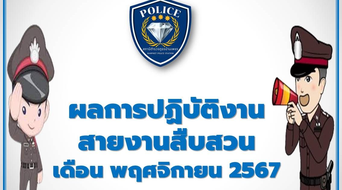 ผลการปฏิบัติงาน งานสืบสวน ประจำเดือน พฤศจิกายน 2567 29 พฤศจิกายน 2567 โดย banphet / ข่าวประชาสัมพันธ์,ข่าวประชาสัมพันธ์,ข่าวฝากประชาสัมพันธ์ ผลการปฏิบัติที่ 1 วันที่ 30 พฤศจิกายน 2567 งานสืบสวน สภ.บ้านเพชร รายงานผลการปฏิบัติงาน ประจำเดือน พฤศจิกายน 2567