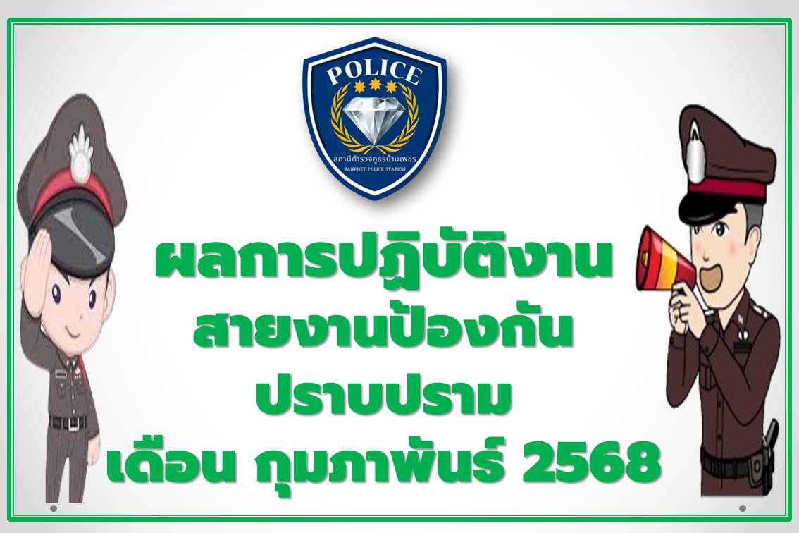 ผลการปฏิบัติงาน งานป้องกันปราบปราม ประจำเดือน กุมภาพันธ์ 2568