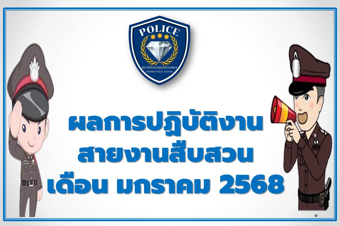 ผลการปฏิบัติที่ 1 วันที่ 31 มกราคม 2568 งานสืบสวน สภ.บ้านเพชร รายงานผลการปฏิบัติงาน ประจำเดือน มกร